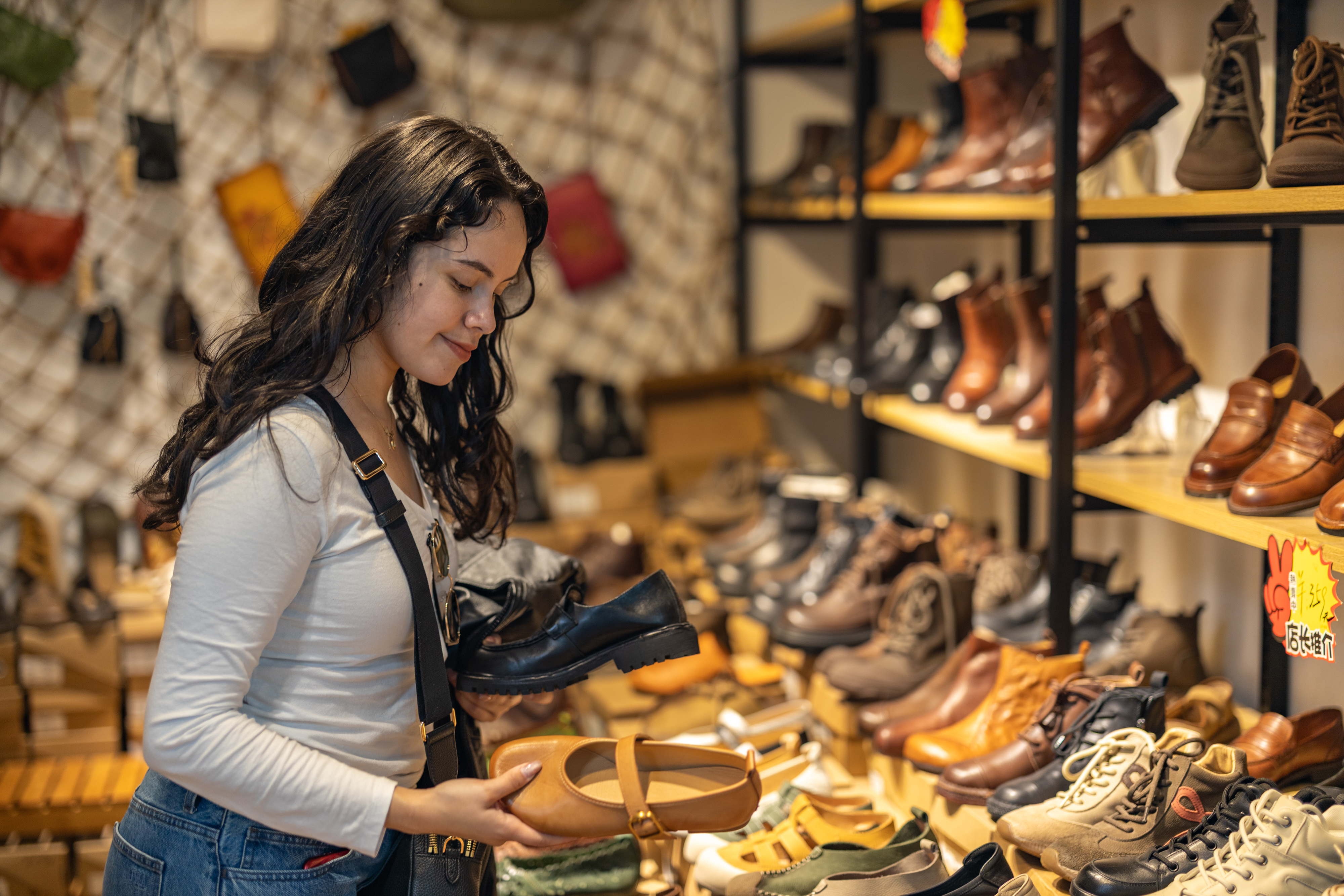 4月22日,在重庆市渝中区新重庆国际小商品批发中心,来自墨西哥的游客在选购女鞋。新华社记者 黄伟 摄