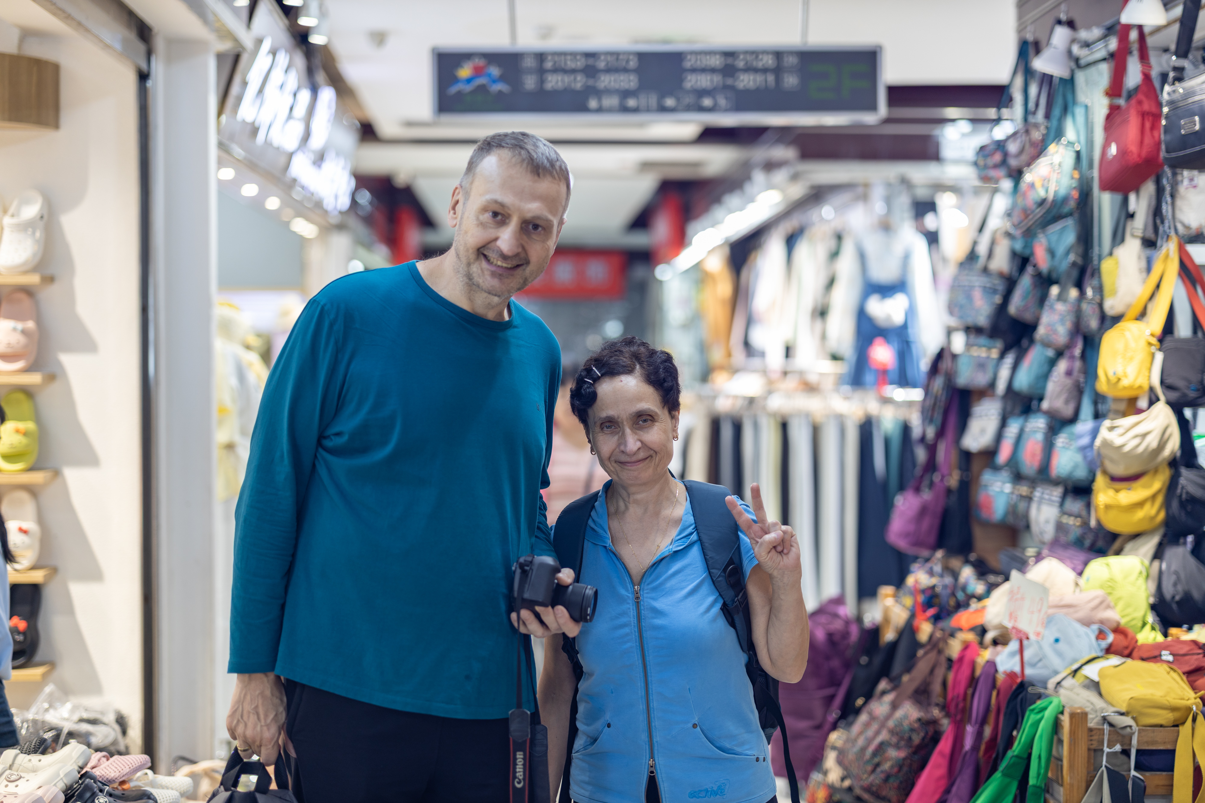 4月22日在重庆市渝中区新重庆国际小商品批发中心拍摄的德国游客,这是这对夫妇第7次来中国旅游。新华社记者 黄伟 摄