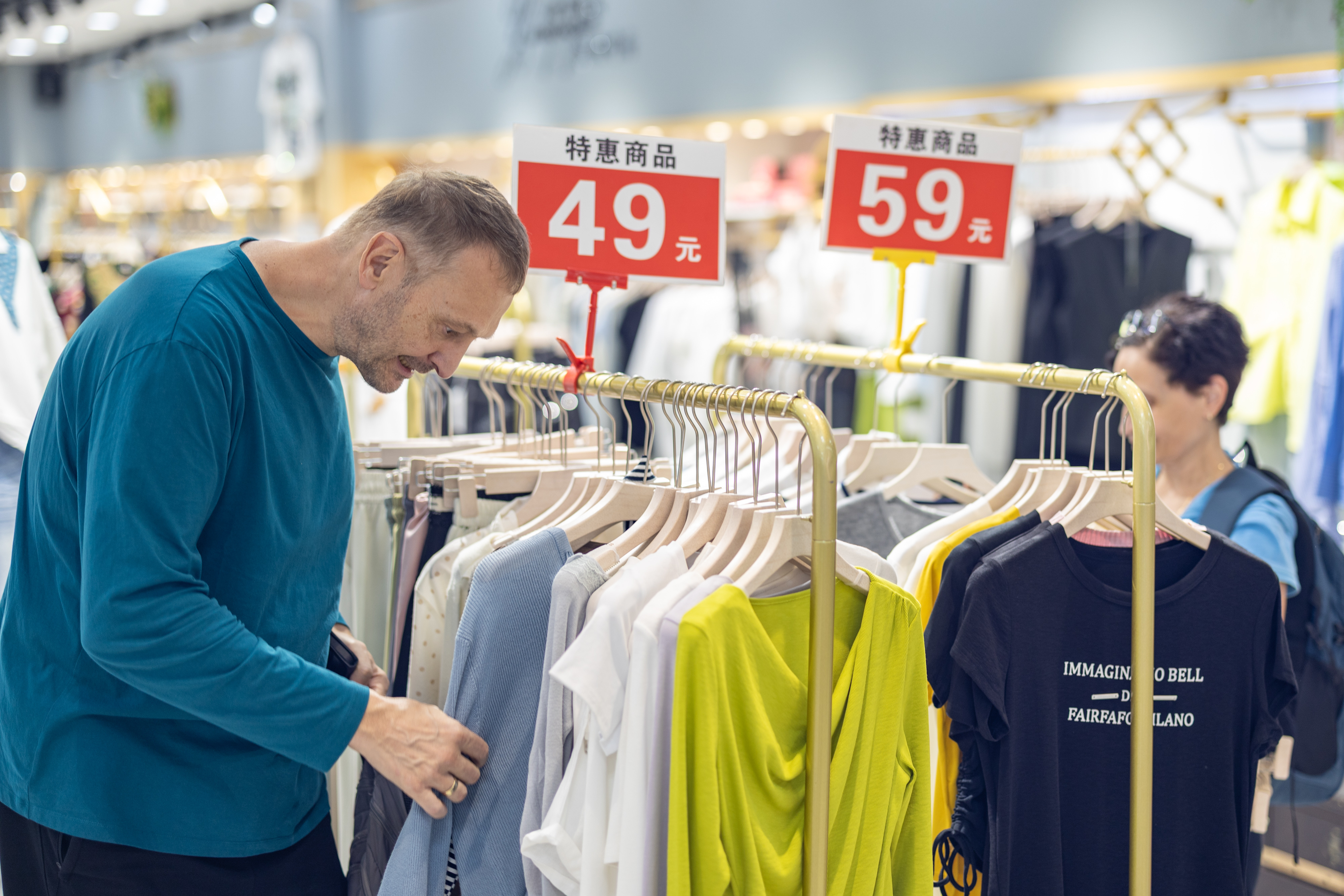 4月22日,在重庆市渝中区新重庆国际小商品批发中心,来自德国的一对夫妇在选购衣服。新华社记者 黄伟 摄